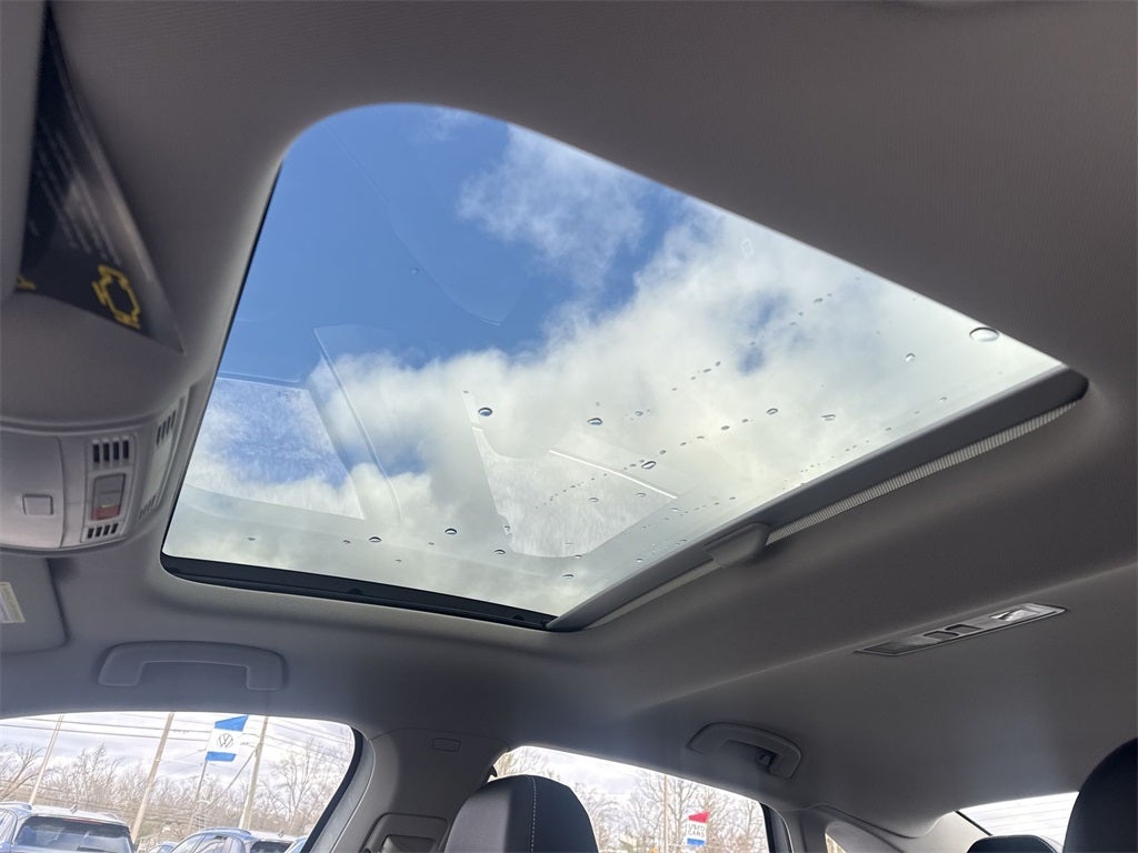 4-Wheel Disc Brakes, 6 Speakers, ABS brakes, Active Blind Spot Monitor, Air Conditioning, Alloy wheels, AM/FM radio: SiriusXM with 360L, Auto-dimming Rear-View mirror, Automatic temperature control, Black Trunk Lid Lip Spoiler, Brake assist, Bumpers: body-color, CloudTex and V-Tex Leatherette Seat Trim, Delay-off headlights, Driver door bin, Driver vanity mirror, Dual front impact airbags, Dual front side impact airbags, Dynamic Wheel Center Caps (set of 4), Electronic Stability Control, Emergency communication system: VW Car-Net Safe & Secure 5-year, Exterior Parking Camera Rear, Front anti-roll bar, Front Bucket Seats, Front Center Armrest, Front Center Armrest Storage Organizing Trays, Front dual zone A/C, Front wheel independent suspension, Fully automatic headlights, Heated door mirrors, Heated Front Seats, Heated front seats, Illuminated entry, Leather Shift Knob, Leather steering wheel, Low tire pressure warning, Occupant sensing airbag, Outside temperature display, Overhead airbag, Overhead console, Panic alarm, Passenger door bin, Passenger vanity mirror, Power door mirrors, Power driver seat, Power moonroof: Panoramic, Power steering, Power windows, Radio data system, Radio: MIB3 Composition Media with 8 Touchscreen, Rain sensing wipers, Rear anti-roll bar, Rear reading lights, Rear seat center armrest, Rear window defroster, Remote keyless entry, Speed control, Speed-sensing steering, Split folding rear seat, Steering wheel mounted audio controls, Tachometer, Telescoping steering wheel, Tilt steering wheel, Traction control, Trip computer, Variably intermittent wipers, VW Care, and Wheels: 17 Twin 5-Spoke 2-Tone Machined AlloY.