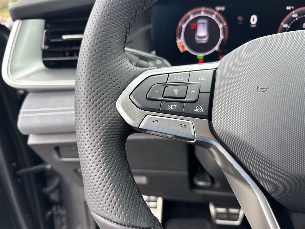 AWD, 4-Wheel Disc Brakes, 4-Wheel Independent Suspension, 7 Speakers, ABS brakes, Air Conditioning, Alloy wheels, AM/FM radio: SiriusXM with 360L, Auto High-beam Headlights, Auto-dimming Rear-View mirror, Auto-Dimming Rearview Mirror with HomeLink, Automatic temperature control, Brake assist, Bumpers: body-color, Compass, Delay-off headlights, Driver door bin, Driver vanity mirror, Dual front impact airbags, Dual front side impact airbags, Electronic Stability Control, Emergency communication system, Exterior Parking Camera Rear, First Aid Kit, Four wheel independent suspension, Front anti-roll bar, Front Bucket Seats, Front Center Armrest, Front dual zone A/C, Front reading lights, Fully automatic headlights, Heads-Up Display, Heated door mirrors, Heated Front Seats, Heated front seats, Heavy Duty Trunk Liner with VW CarGo Blocks, Illuminated entry, Knee airbag, Leather Shift Knob, Leather steering wheel, Low tire pressure warning, Occupant sensing airbag, Outside temperature display, Overhead airbag, Overhead console, Panic alarm, Passenger door bin, Passenger vanity mirror, Perforated V-Tex Leatherette Seating Surfaces, Power door mirrors, Power driver seat, Power Liftgate, Power moonroof: Panoramic, Power steering, Power windows, Radio data system, Radio: MIB4 Composition Media Touchscreen with AM/FM, Rain sensing wipers, Rear anti-roll bar, Rear reading lights, Rear seat center armrest, Rear side impact airbag, Rear window defroster, Rear window wiper, Remote keyless entry, Roadside Assistance Kit, Rubber Monster Mats Kit (set of 4), Security system, Speed control, Speed-sensing steering, Split folding rear seat, Spoiler, Sport steering wheel, Steering wheel mounted audio controls, Tachometer, Telescoping steering wheel, Tilt steering wheel, Traction control, Trip computer, Turn signal indicator mirrors, Variably intermittent wipers, VW Care, and Wheels: 20 Black Painted AlloY.